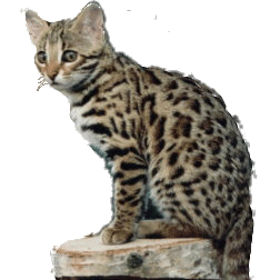 angestellt: Mit einer wilden Bengalkatze (felis bengalensis), die hauptsächlich im südasiatischen Raum vorkommt (z.B. Burma, China, Indien, Nepal, usw.), und einer Hauskatze. Ziel war, eine zahme und zutrauliche Katze zu züchten, die ihrem wilden Vorbild möglichst sehr ähnlich sieht. Um weitere Farben und Blutlinien zu erhalten, wurden andere Rassekatzen eingekreutzt. Dazu gehörten z. B.: Egyptian Mau, Abessinier, getupfte Orientalisch Kurzhaar und American Shorthair. 1988 kamen die ersten Bengalkatzen auf eine deutsche Ausstellung, und begeisterten die Besucher mit ihrer eindrucksvollen Tupfenzeichnung. |