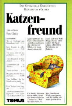 TOMUS - Verlag; von Günter Stein und Hans Ulrich, Sie erfahren: Wie der Tierfreund zum Katzenfreund wird; über erste Kontakte in stillen Straßen; von alten und jungen Katzen; vom Mittagstisch als Katzentisch; über Katzenfreundschaft im Härtetest; vom Nachbarn, der das Kätzchen nicht gewollt; über erste Wochen und letzte Stunden; Tips aus Katzensicht: >>Der Mensch im Bett ist unhygienisch<< und vieles mehr. Ein Buch, das man lesen sollte, wenn die Katze nicht im Zimmer ist. Weil sie sich sonst sofort draufsetzt. Und zwar genau auf die Stelle, die man gerade liest! |