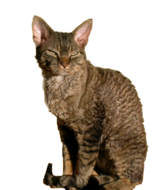 dessen Fell durch eine natürliche Mutation gelockt gewesen sein soll. Miss Beryl Cox, eine ebenfalls dort lebende Katzenfreundin, versorgte ab und zu eine streunende dreifarbige Katze. Als diese Junge bekam, befand sich in dem Wurf ein Katerchen mit gewelltem Fell. Es schien ein Sohn dieses gelockten Katers von der nahegelegenen Zinnmine zu sein. Miss Cox behielt den Kater und nannte ihn "Kirlee". |