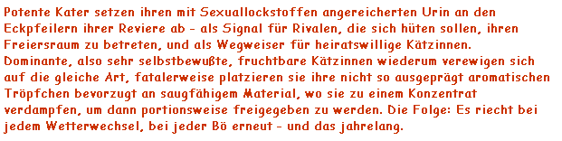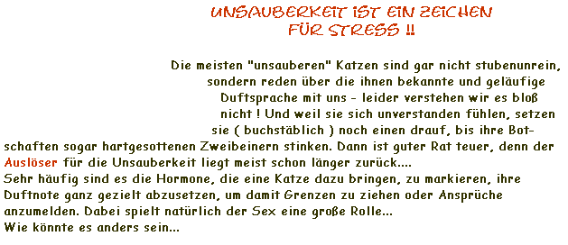 der Unsauberkeit ausmachen. Diese Katzen markieren wie