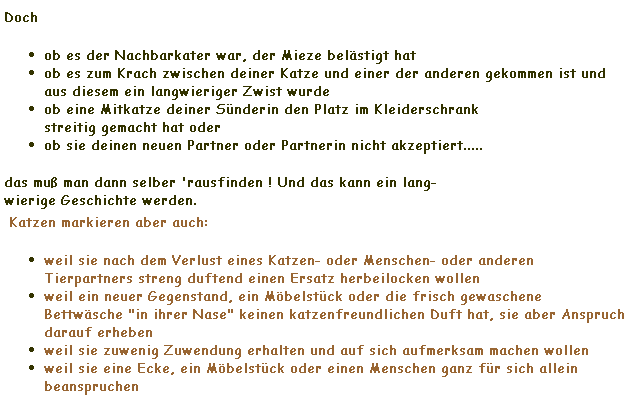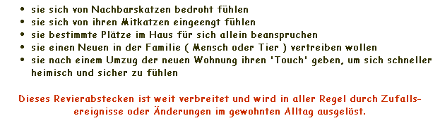 hat es im Lebensumfeld Veränderungen gegeben, die möglicherweise die Katze unter Streß setzen ?