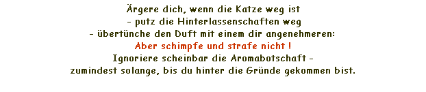 Textfeld: hat die Katze ein traumatisches Erlebnis ( Schock, Schreck, Schmerz ) auf der Toilette gehabt ?