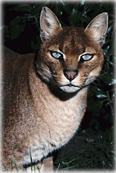 verschiedene Arten: die Goldkatze und die Silberkatze. Sie bevorzugt die gleichen Gegenden wie der Leopard. Sie jagt Vögel, Antilopen und Hausvieh. Bei einem Gewicht bis zu 16 kg erreicht sie eine Gesamtlänge von 148 cm, davon sind bis zu 46 cm Schwanz. Die Schulterhöhe liegt bei 51 cm. Über ihre Fortpflanzung weiss man kaum etwas. |