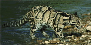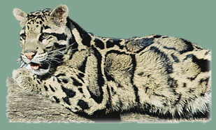 Tropenwäldern Südasiens. Oftmals "teilt" er sein Revier mit Tigern und Leoparden, weswegen er meist in den Bäumen jagt, um nicht mit ihnen zu konkurrieren. Nur auf Borneo ist das anders, dort jagt er deshalb häufiger am Boden. Sein auffallend gemustertes Fell hat hell- bis dunkelbraune Flecken mit abgesetzten schwarzen Streifen, Tupfen und Flecken. Im Schattenspiel des Waldes ist er dadurch nahezu unsichtbar. |