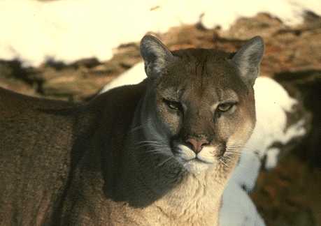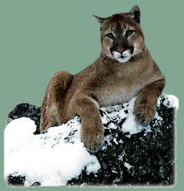 Wildkatzenart. In Florida gibt es noch eine kleine Population. Er wird auch Berg- oder Silberlöwe genannt und ist die grösste der sogenannten 'Kleinkatzen'., fast so gross wie ein Leopard. Er bewohnt dichte Wälder, Sumpfgebiete, Busch- und Grasland und man findet ihn sogar noch bis in Höhen von 4600 m. Der Puma bewohnt keine festen Lagerstätten, sondern sucht nur vorübergehend Schutz in Höhlen, Felsspalten und in dichter Vegetation. |