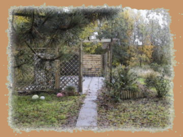 Sophies' Leidwesen wird es aber wohl keine Fische im Teich geben... Ihr machen nasse Füße nix aus, sie würde bestimmt gerne angeln gehen, aber sie ist nicht der Grund für "Fische is' nich", sondern die schon erwähnten Reiher: Unsere Frau meint, sie möchte nicht regelmäßig bloß den Speiseplan der Vögel mit abwechslungsreichem Fischbestand ergänzen. Frösche sind ja auch ganz witzig und kommen von selbst. Hier könnt ihr von hinten am Haus vorbei rüber zum Nachbarn sehen... na ja, zum Nachbar-Grundstück besser gesagt. Es gibt keine Autos, die durchfahren: Unseres ist von den drei Häusern das letzte an einer kleinen Straße - nach unserem Garten kommt nur noch das Siel. Also wenn der Umzug schon sein musste, dann haben unsere Menschen es immerhin ziemlich gut gemacht und wir haben noch mehr Platz als vorher und keinen gefährlichen Straßenverkehr. |